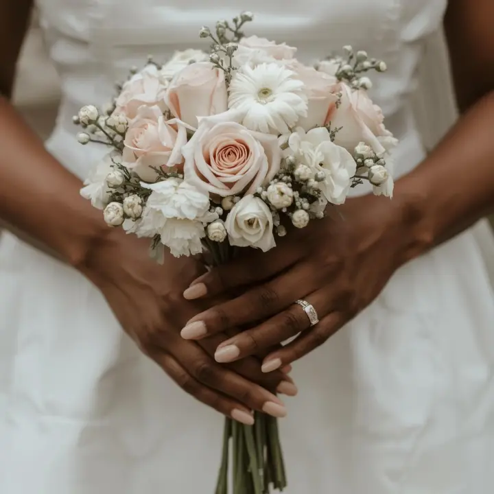 Les ongles : ils apparaissent sur toutes les photos l'alliance, le bouquet, les mains jointes. Une manucure faite 2 à 3 jours avant le mariage (pas le jour même, pour éviter les chocs) en finition gel ou semi-permanente tient bien sur la durée de la réception.